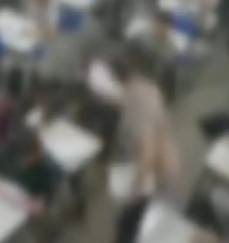 Nas imagens registradas por câmeras de segurança, é possível ver o momento em que o professor tropeça em uma mochila no chão próxima de outra mesa, coloca no lugar e, em seguida, bate na mesa de um aluno.