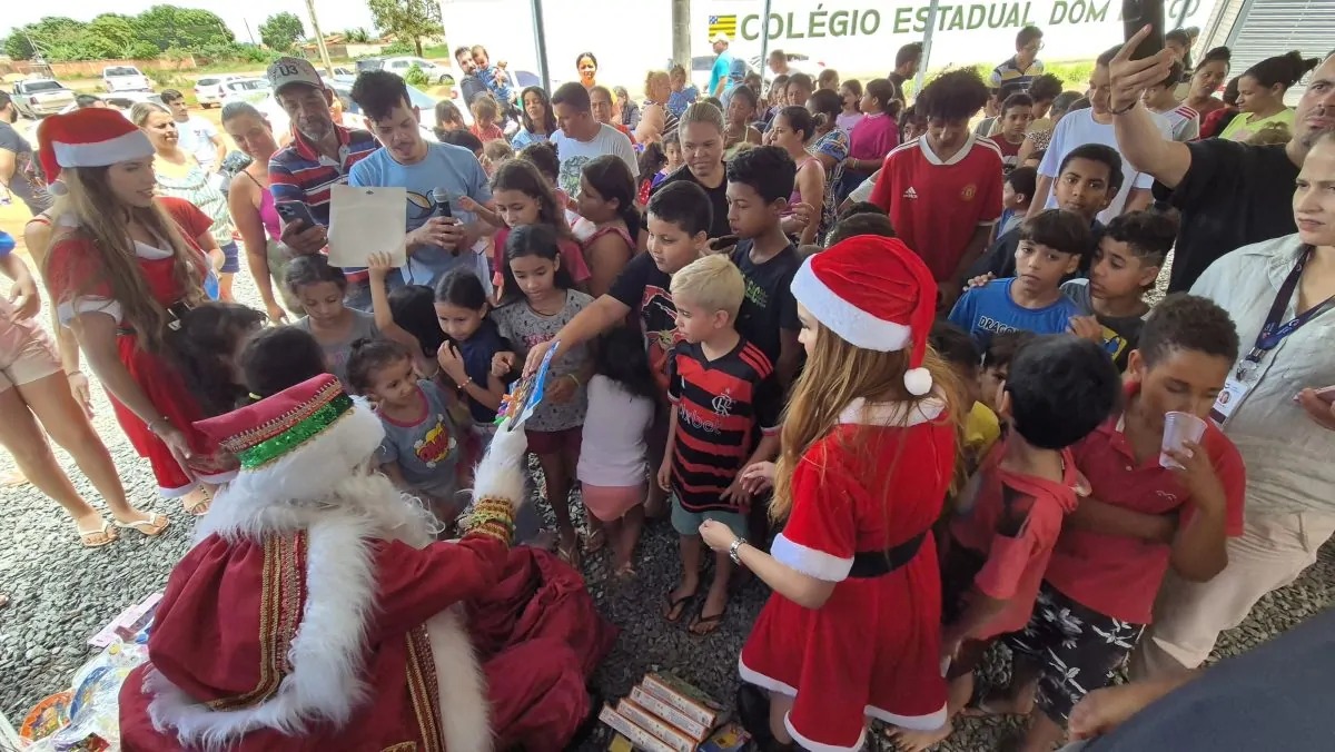 A ação social realizada no último sábado, em Aparecida de Goiânia, que contou com a presença do Papai Noel e distribuiu cerca de 600 brinquedos para crianças carentes, foi organizada pela Urbaniza.BR e pela Trinus. Além dos brinquedos, as famílias presentes puderam desfrutar de brincadeiras, pipoca, picolé e algodão-doce, proporcionando momentos de alegria e diversão para a comunidade local.