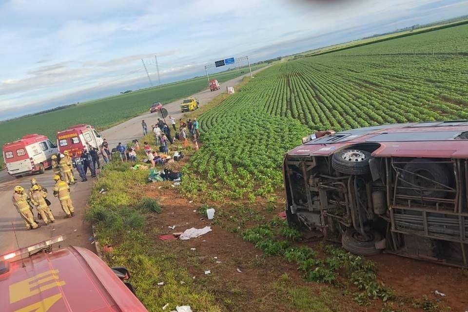 Na madrugada desta quinta-feira, 23, um ônibus tombou na GO-436, próximo a Cristalina, município goiano a 147 km de Brasília. O acidente deixou 25 feridos, entre eles, seis ficaram gravemente feridos, inclusive um bebe de um ano, e foram encaminhados para unidades de saúde.