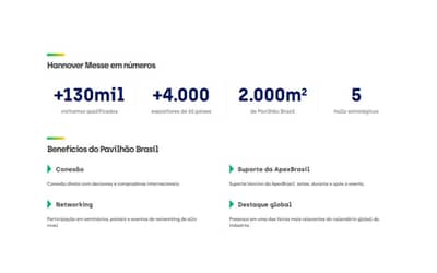 “Ser o país-parceiro dessa feira traz todos os holofotes para os pavilhões brasileiros. Nossa proposta está construída para posicionar o Brasil como um parceiro confiável, que entrega soluções de alto valor agregado para a indústria. Também queremos projetar o Brasil como um líder em transição energética e em soluções capazes de alavancar as indústrias de todo o mundo”, destaca.