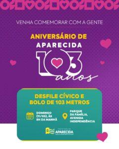 Prefeitura de Aparecida realizará desfile cívico com bolo de 103 metros em Comemoração ao aniversário da Cidade