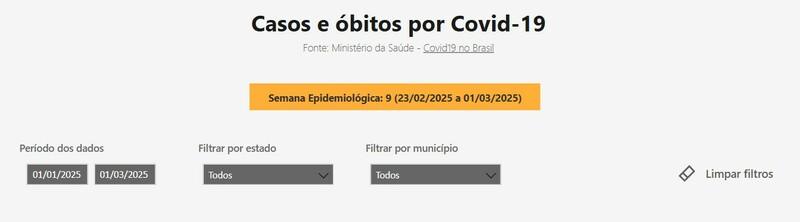De 1° de janeiro a 1° de março deste ano o Brasil teve 136.861 casos de Covid-19. Já os óbitos pela doença somaram 698. Na Semana Epidemiológica (SE) 09/2025, correspondente ao período de 23/02 a 01/03, foram registrados 6.354 novos casos e 34 mortes pela doença. Segundo o Informe do Ministério da Saúde (MS), houve diminuição de 11,5% na média móvel de casos e diminuição de 19,2% na média móvel de óbitos em comparação à SE 8/25 – que diz respeito ao período de 16/02 a 22/02 – quando foram registrados 22.097 novos casos e 153 mortes. Os dados são do Painel da Covid-19 no Brasil, do MS.