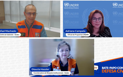 A primeira declaração ministerial do Grupo de Trabalho de Redução do Risco de Desastres (GTRRD) do G20, que sela o compromisso das nações com o tema, norteou o Bate-Papo com a Defesa Civil nesta quinta-feira (28). O documento, aprovado em novembro do ano passado durante evento do G20 em Belém, no Pará, é um marco na temática da redução de desastres. O encontro foi transmitido pelo canal do Ministério da Integração e do Desenvolvimento Regional (MIDR) no YouTube. Mediado pelo chefe de gabinete da Secretaria Nacional de Proteção e Defesa Civil (Sedec), Rafael Machado, o bate-papo contou com a presença da oficial de programas do Escritório das Nações Unidas para Redução do Risco de Desastres (UNDRR), Adriana Campelo, e da coordenadora de relações institucionais da Sedec, Glaucia Hassler.