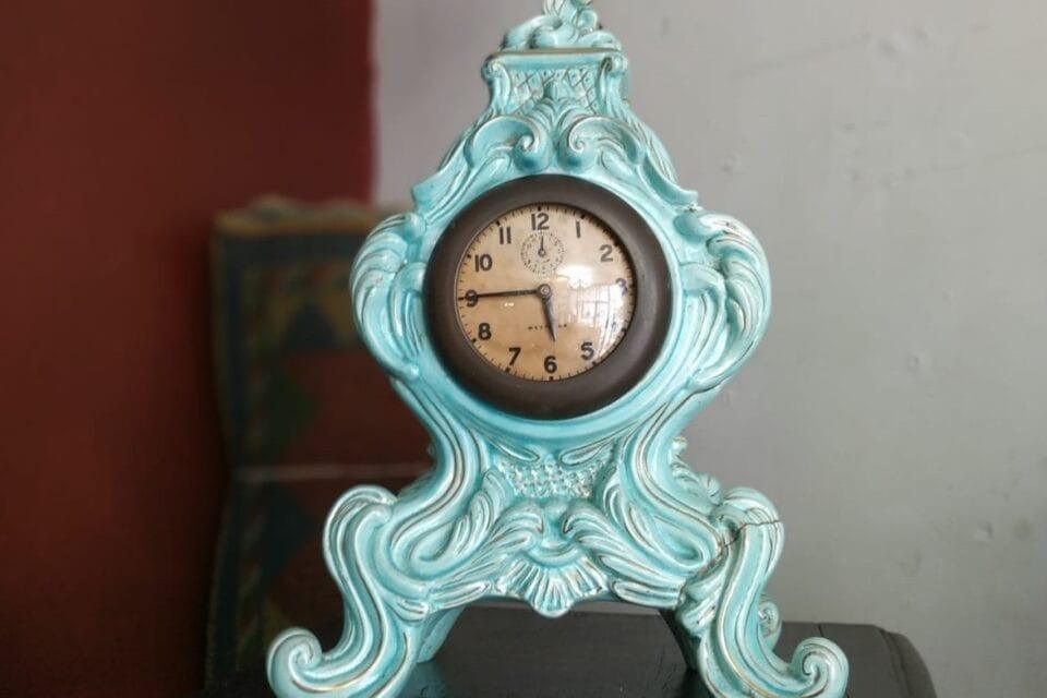 Relógio em louça feito em fio de ouro, que estará disponível na feirinha (Foto: Divulgação)