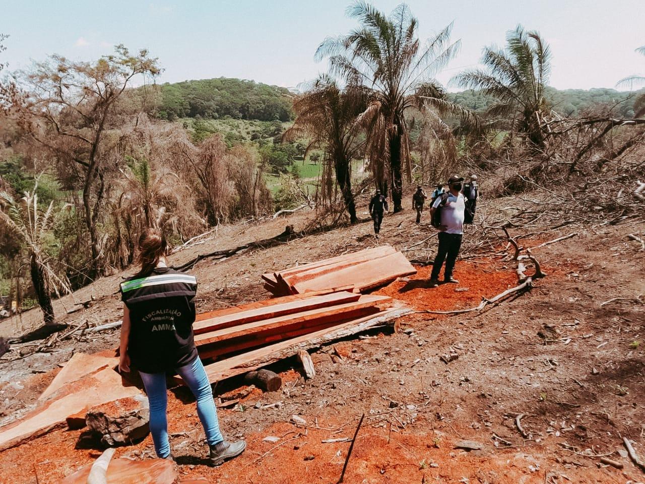 No local, em visita prévia, já havia sido identificado extração ilegal de madeira e queimada. Neste sábado, 23 de outubro, foi realizada a operação de apreensão destes produtos da flora, com apoio da Secretaria Municipal de Infraestrutura, Guarda Municipal e Patrulha Ambiental do Brasil.