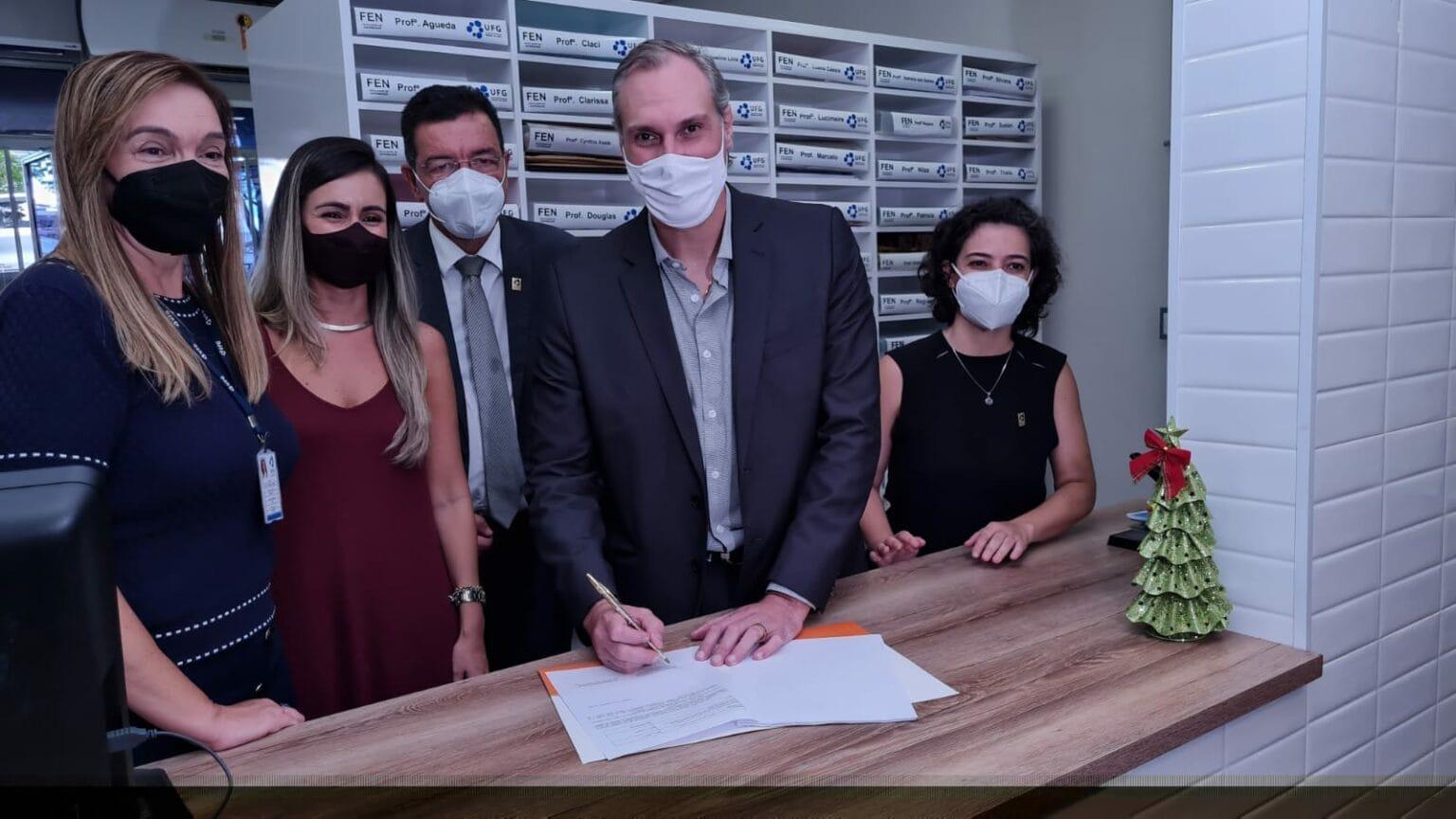 O ano de 2021 se encerra com a realização de mais uma parceria entre a Universidade Federal de Goiás (UFG) e a Prefeitura de Goiânia, por meio da Secretaria de Saúde de Goiânia (SMS). Desta vez, o acordo, assinado pelo secretário Durval Pedroso e o reitor Edward Madureira, prevê o funcionamento de sala de vacinas, por cinco anos, na Faculdade de Enfermagem (FEN/UFG), situada na Rua 227, Viela Q. 68, S / N, Setor Leste Universitário.
