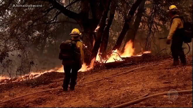 Um incêndio florestal próximo ao parque nacional Yosemite, nos Estados Unidos, está fora de controle. A região é conhecida por abrigar árvores gigantes e milenares. Cerca de 2.000 bombeiros atuam no combate às chamas, mas o terreno íngreme e tempo quente e seco dificultam o trabalho dos agentes.