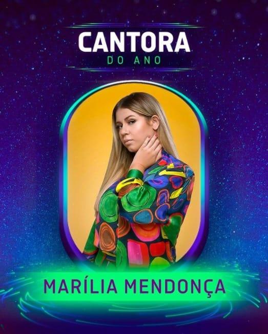 “‘Você virou saudade aqui dentro de casa’ e não poderíamos agradecer de forma diferente tudo o que você representa para a música brasileira. Marília Mendonça é a nossa Cantora do Ano e estão canceladas as votações para a categoria no Prêmio Multishow 2021. Em um gesto de amor, respeito e sororidade, Anitta, Ivete Sangalo, IZA e Luísa Sonza se juntaram à família Multishow e aos fãs de todo o Brasil para homenagear a inesquecível patroa”, informou a emissora. Na premiação deste ano, que acontece no dia 8 de dezembro, no Rio de Janeiro, Marília será homenageada e seu legado na música ressaltado. “Seguiremos aplaudindo e celebrando seu talento e sua história.” Bruno Cardoso, Duda Beat, Joelma e Tati Quebra Barraco foram alguns dos artistas que celebraram a decisão.
