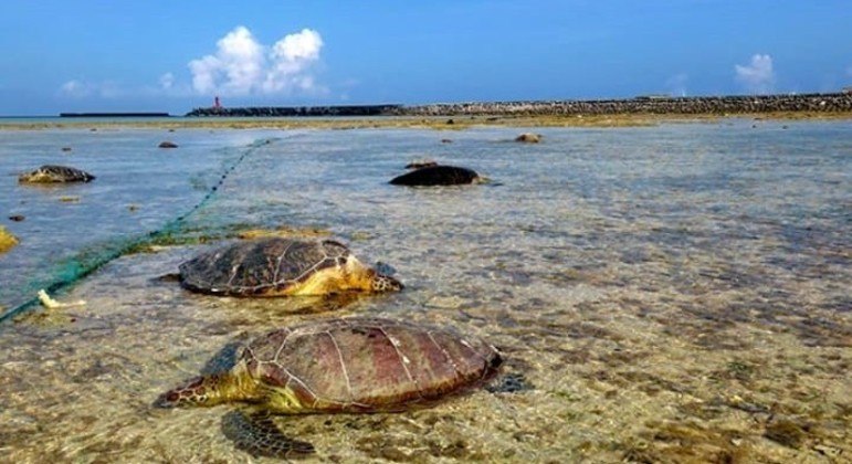 “Foi uma cena dantesca”, disse à AFP Yoshimitsu Tsukakoshi, membro de uma organização de conservação de tartarugas marinhas em Kumejima.