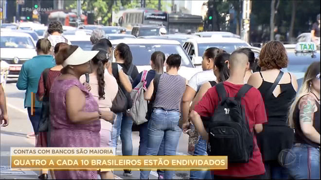 Quatro em cada dez brasileiros estão com as contas atrasadas. A maior parte dos inadimplentes tem entre 30 a 39 anos, e as dívidas que mais aumentaram foram as de bancos, seguidas por comércio, água e luz e comunicação.