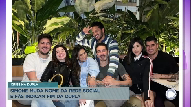 Simone, da dupla com Simaria, trocou o nome do perfil nas redes sociais e fãs especulam sobre uma carreira solo. A artista ainda publicou uma foto ao lado de outros influenciadores e logo depois, Simaria deixou de seguir todos que estavam na postagem. VEJA MAIS Caixa demite dois vice-presidentes e altera estrutura da Corregedoria Bolsonaro diz que caminhoneiros serão pagos a partir da 1ª quinzena de agosto Pessoa com deficiência pode pedir a transferência da seção eleitoral