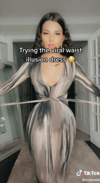 Um vestido tem chamado bastante atenção na web. Conhecido no TikTok estrangeiro como “waist illusion dress”, “vestido ilusão de cintura” na tradução literal, a peça chocou os internautas justamente por dar a impressão de que diminui a cintura de quem veste.