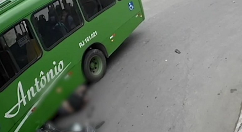 Um motociclista caiu de uma moto, na manhã desta segunda-feira (18), e foi parar embaixo da roda de um ônibus na av. dos Colonizadores, em Belford Roxo, na Baixada Fluminense.