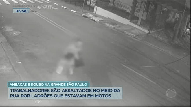 Flagrante de trabalhadores assaltados no meio da rua na Grande São Paulo. Os dois homens voltavam para casa, na madrugada, depois de um dia duro de trabalho, quando foram abordados, ameaçados e roubados pelos criminosos.